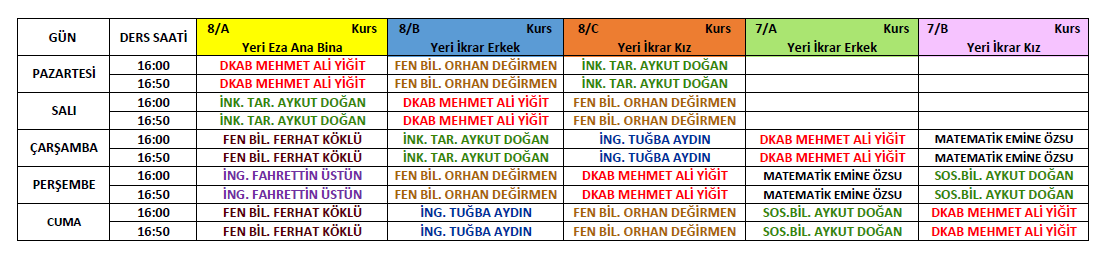 8-A SINIF LİSTESİNE ULAŞMAK İÇİN TIKLAYINIZ.